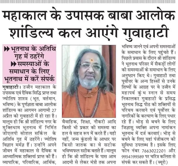 - विख्यात दैविक सिद्ध ज्योतिष बाबा श्री आलोक शांडिल्या
